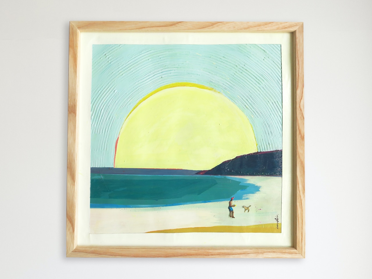 シンプルに描かれた絵が、カラフルが苦手な方も飾りやすい作品です。