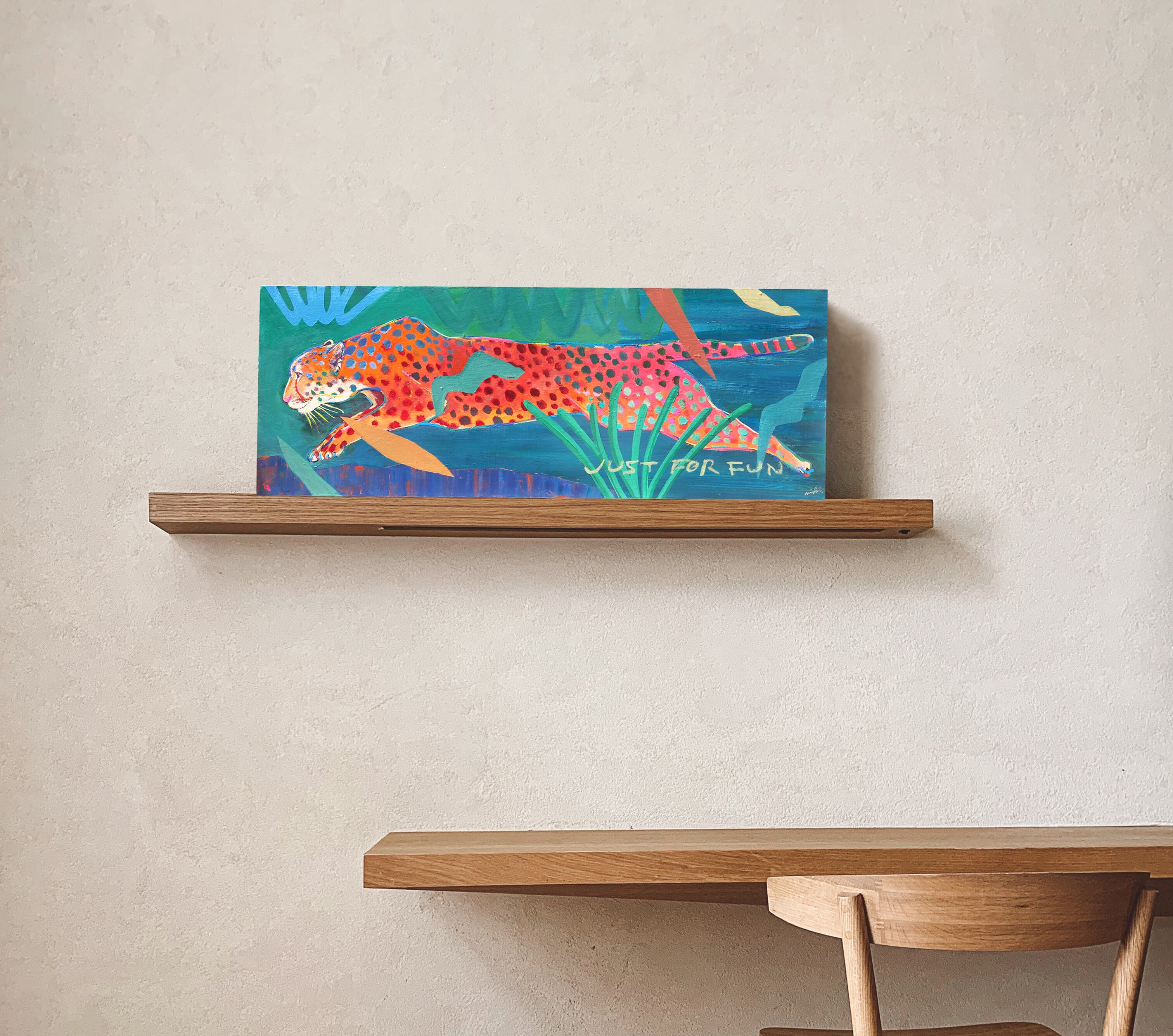 JUST FOR FUNは、チーターの愛らしい姿をキャンバスに描いたアート作品です。