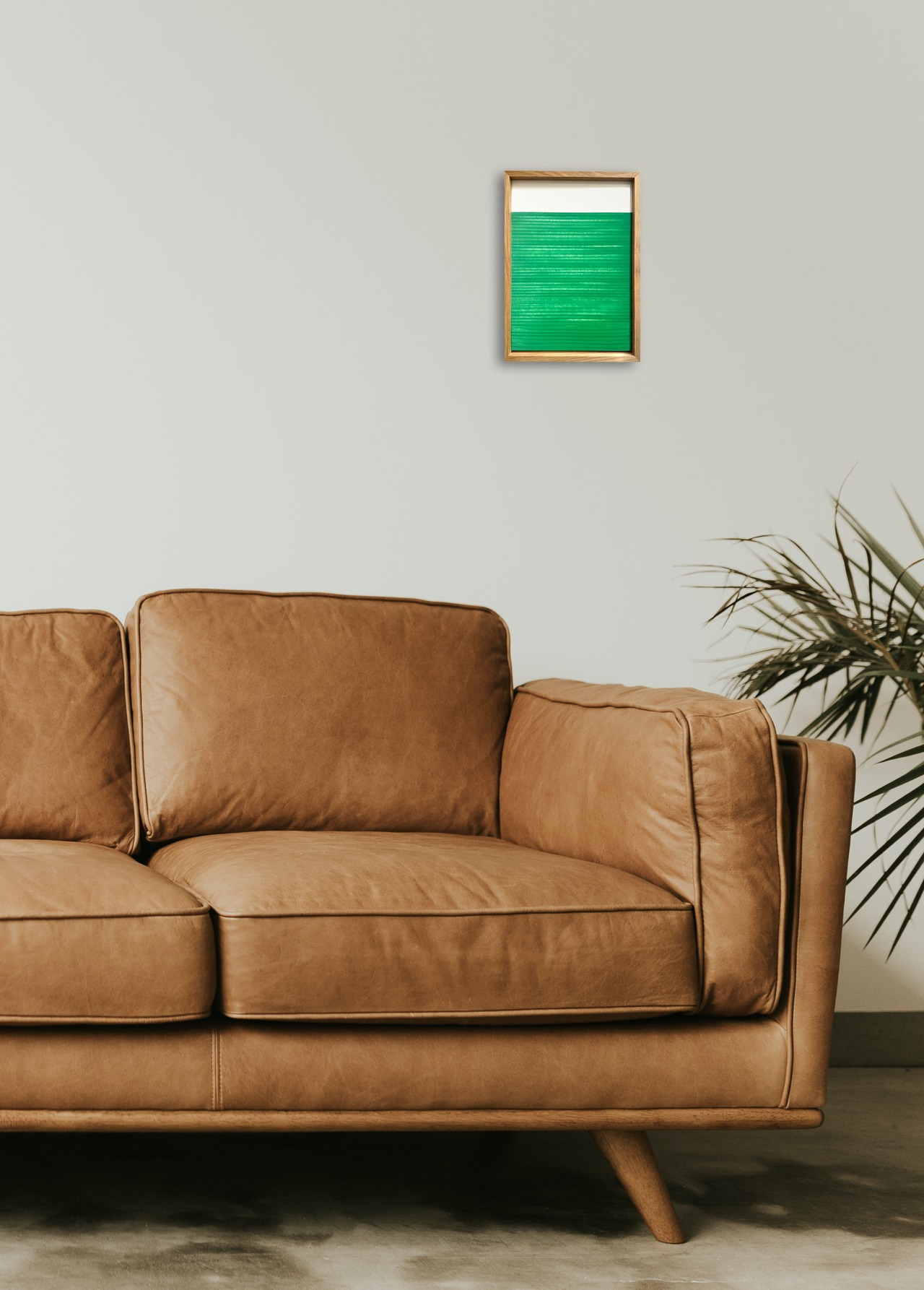 地平線を描いたこの絵は、何層にもなる真っ直ぐなグリーンラインが美しく印象的です。